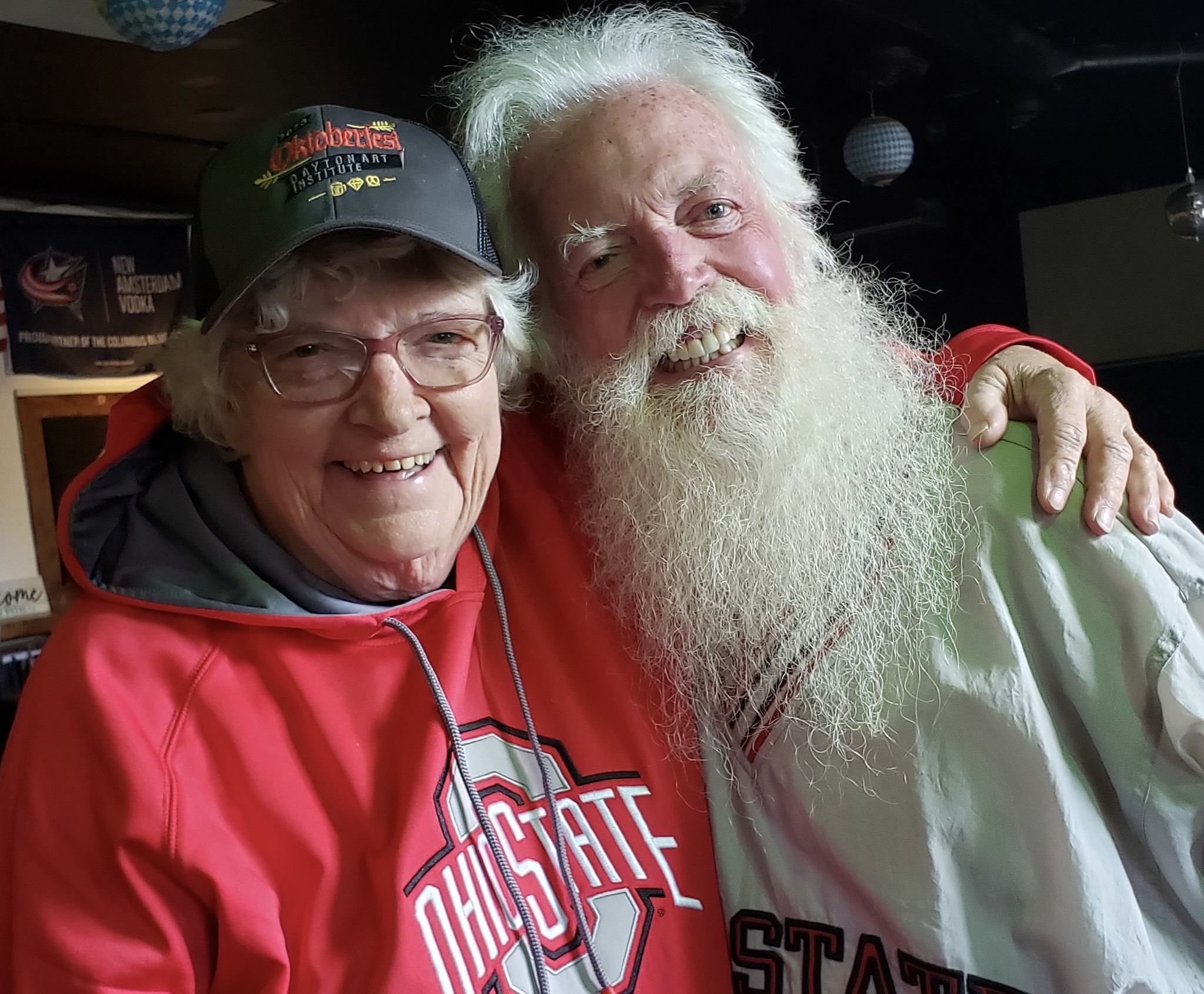 Timm and Sue’s support and community participation goes outside of the Southeast Lions and outside of the Hey Hey walls. Every Memorial Day, Timm, with several Southend Lions members, placed flags on every veteran’s grave at St. Joseph’s Cemetery from about 1969-2020. He is an active member of the St. Mary Parish and most notably of all, he is the resident Santa for the annual German Village tree lighting at Frank Fetch park. When the Columbus Maennerchor was in need, Sue traded her time in the Hey Hey for cooking and managing the Maennerchor restaurant, bar, event and catering services until they sold the building to the city.